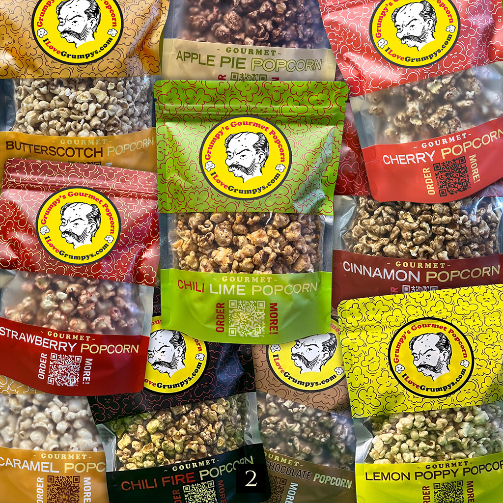 Grumpy’s Gourmet Popcorn, with its comical narrative tone aiming towards a folksy – and largely invented – corporate mythology, made its debut in prototype form in December 2024 and is currently setting up the rest of its distributorship.